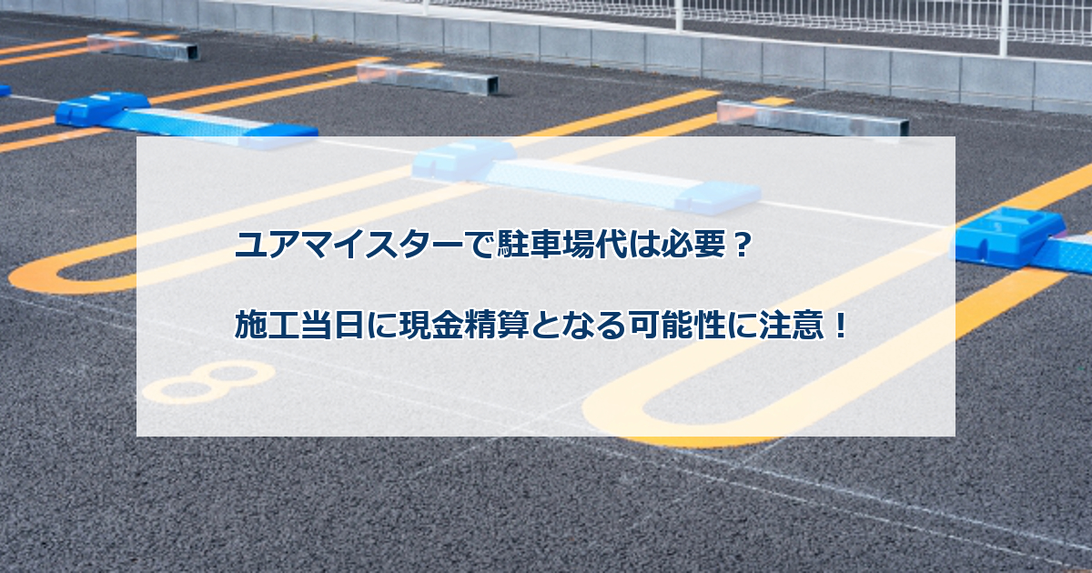 このときの駐車場代は作業に必要な実費として扱われることがあり、ユアマイスターの基本料金とは別に発生する可能性があります。